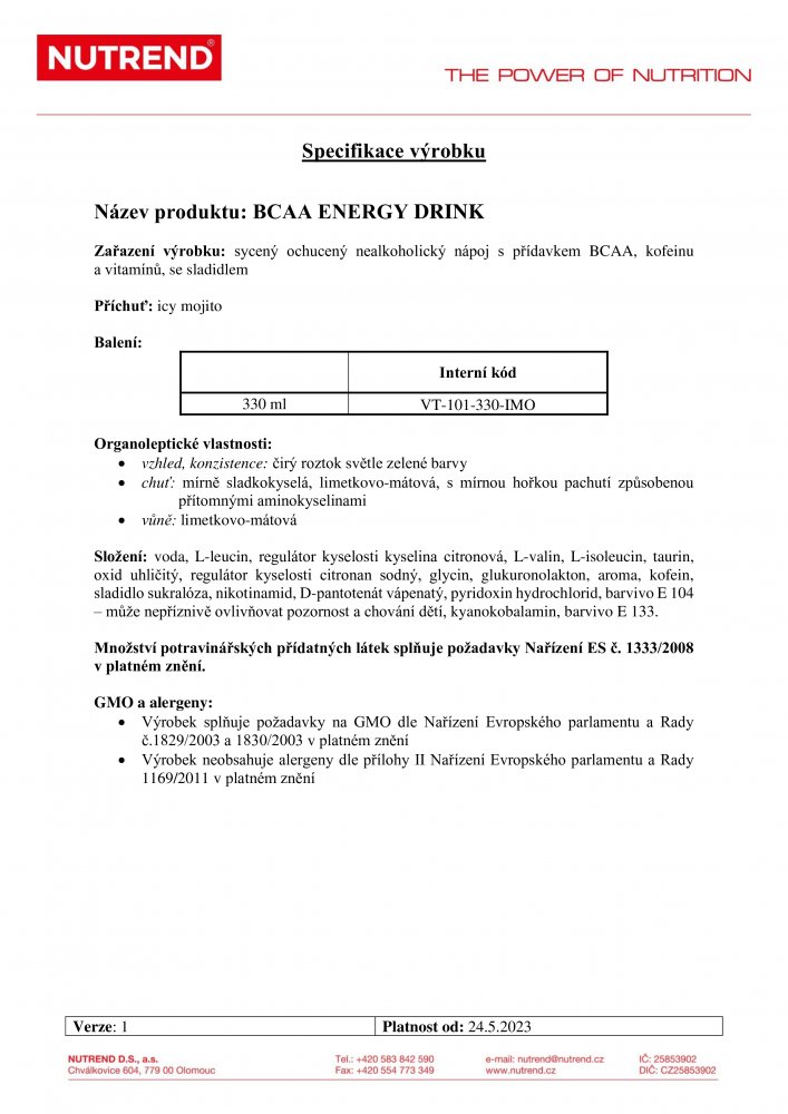 drink s vysokým obsahem BCAA, obohacen o kofein, taurin a vitaminy skupiny B