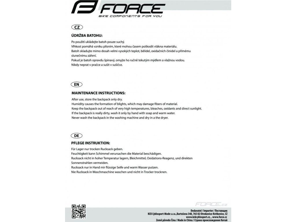 FORCE je česká značka cyklistického vybavení, která spojuje moderní design, funkčnost a výborný poměr cena/výkon. Nabízí kompletní sortiment pro cyklisty všech úrovní – od oblečení a helem, přes komponenty a nářadí, až po doplňky a příslušenství.