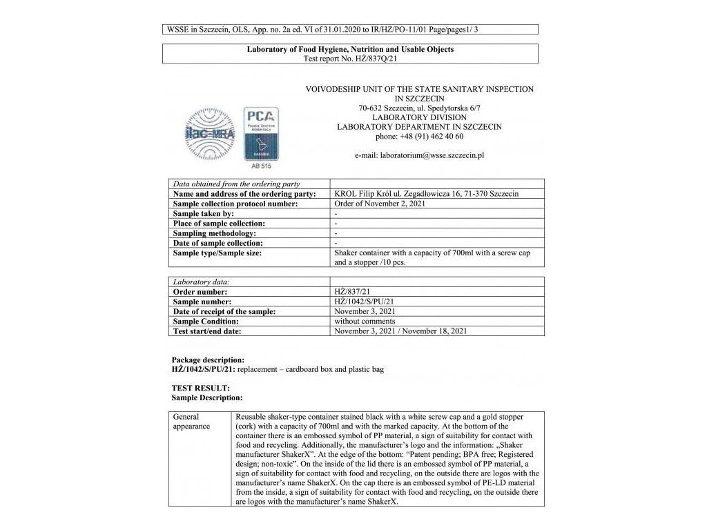 transparentní šejkr s objemem 700 ml