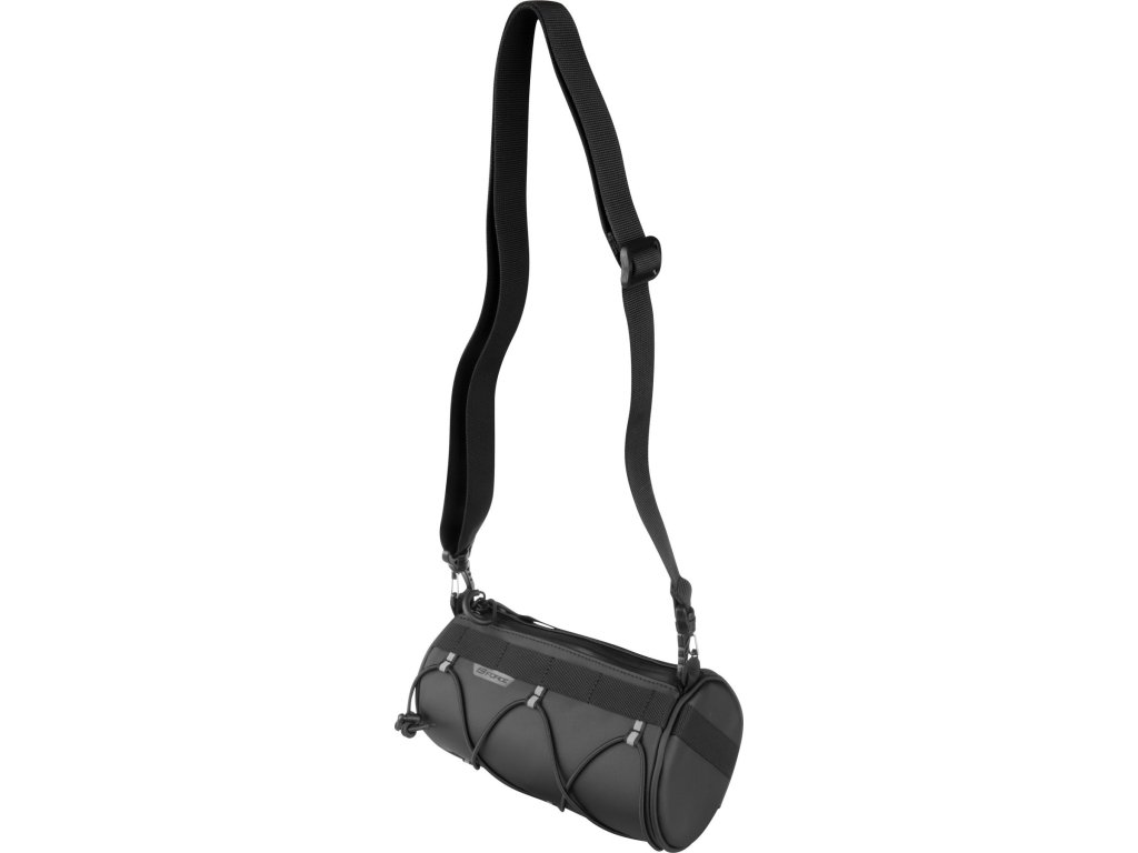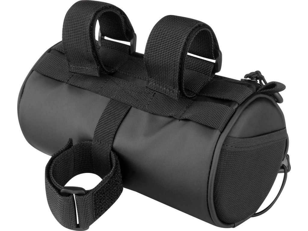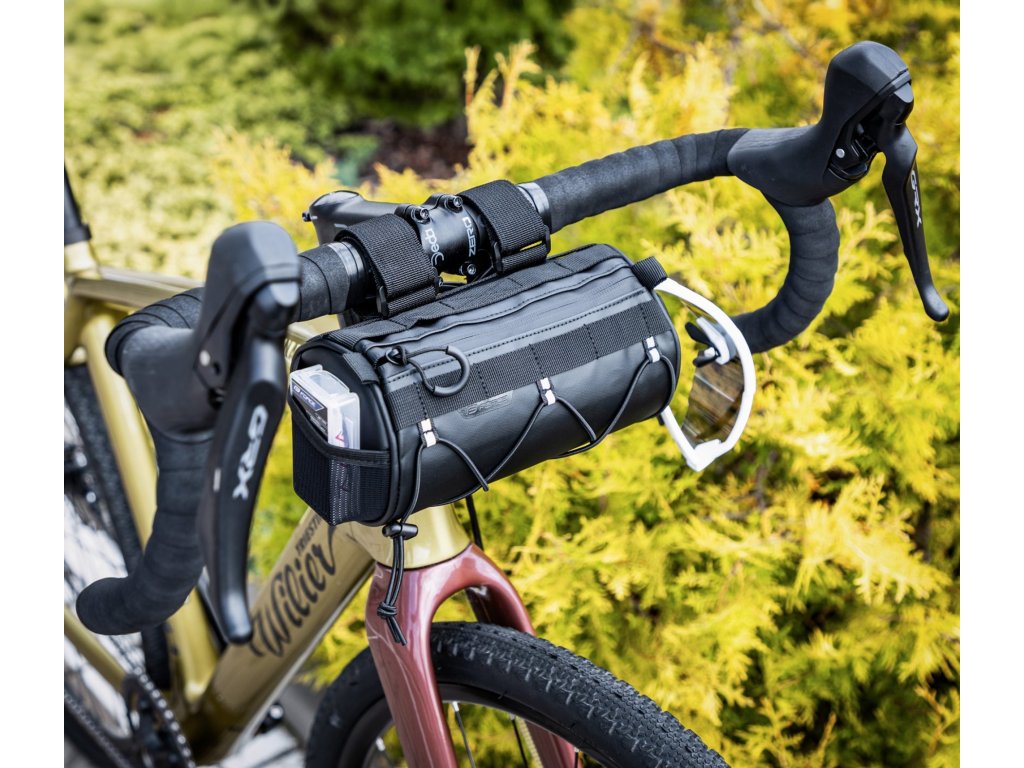 Populární burrito brašna z voděodolného materiálu tarpaulin je ideální volbou pro cyklisty, kteří chtějí mít své věci v suchu i za nepříznivého počasí – ochrání vaše věci před mírným deštěm a stříkající vodou (není však vodotěsná). Díky nastavitelným popruhům se suchým zipem ji snadno připevníte na řídítka, a praktický design doplňuje gumicuk pro uchycení dalších věcí, boční síťovaná kapsa i odnímatelný ramenní popruh.