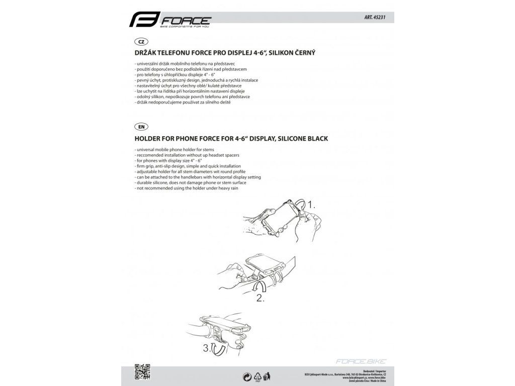 držák telefonu FORCE na představec, silikon černý