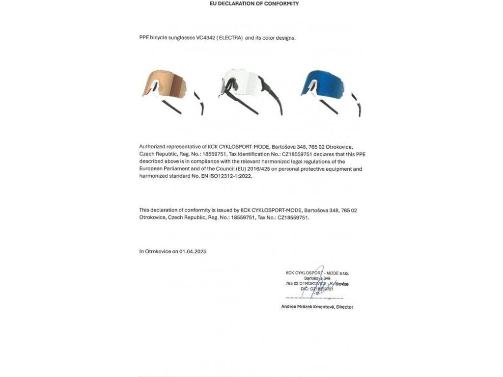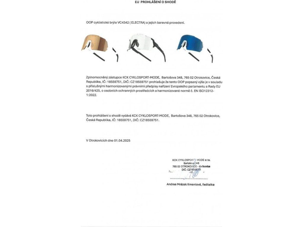Brýle jsou vybaveny fotochromatickými skly, která se automaticky přizpůsobují intenzitě ultrafialového záření. Při vyšší intenzitě slunečního záření skla zatmaví, a při nižší intenzitě světla se opět zesvětlují, což zajistí optimální viditelnost v každém počasí. Fotochromatická skla navíc obsahují oleofobní úpravu, která zvyšuje odpudivost vody a zabraňuje usazování mastnoty a nečistot na povrchu. Skla mají kategorii filtru 1-3 a propustnost 15-80%, což poskytuje univerzální ochranu při různých světelných podmínkách. Tato technologie zajišťuje, že oči jsou vždy chráněny, ať už se jedná o jasný slunečný den nebo zatažené počasí.