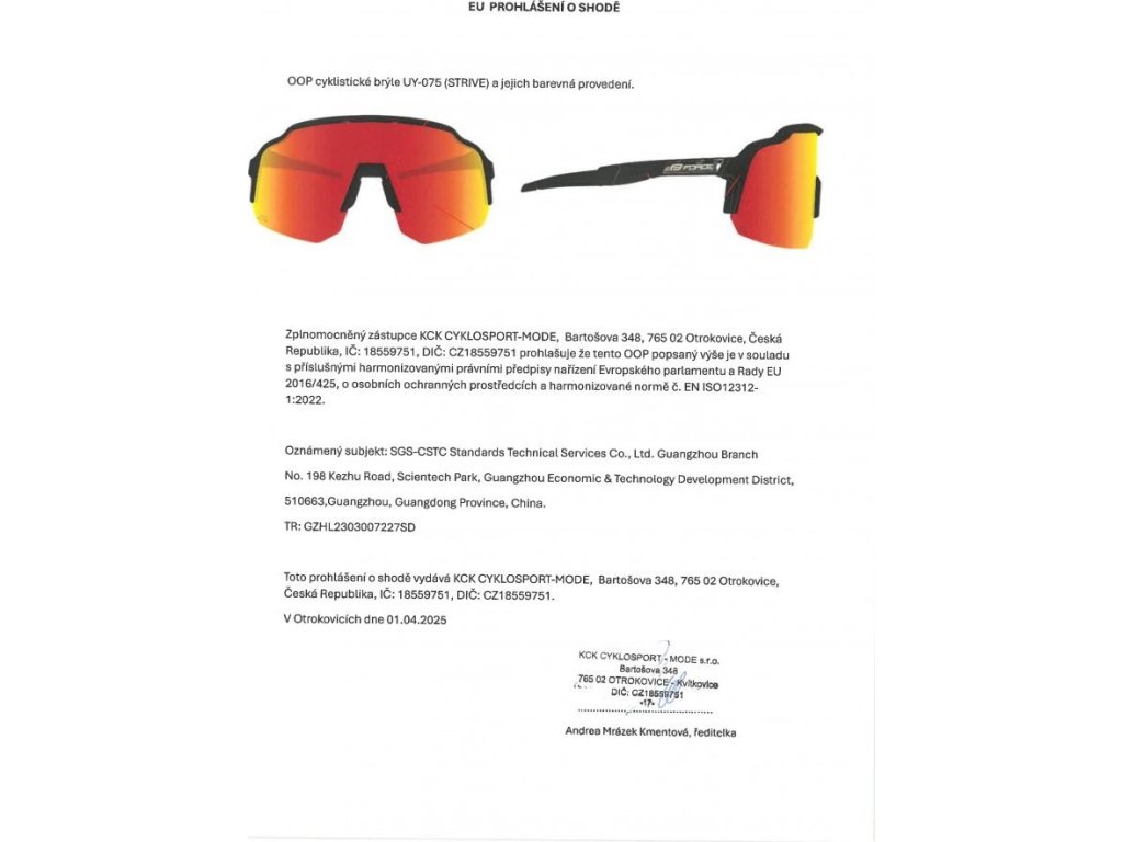 brýle FORCE STRIVE transparentní,červené zrc. sklo