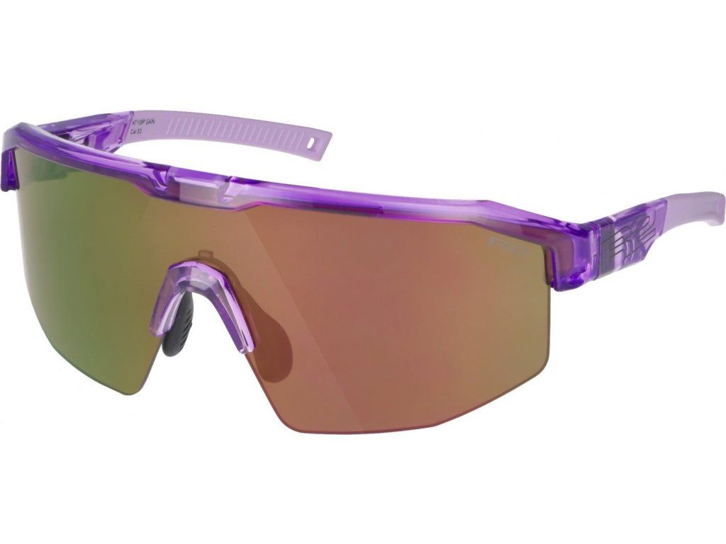 Lehký a pružný rám z grilamidu TR90 drží stabilitu i při intenzivním pohybu, zatímco protiskluzový nosník a stranice zajišťují jistotu v každé situaci. Technologie Flexipad umožňuje nosníky přizpůsobit tvaru nosu, takže brýle sedí přirozeně a bez rušení. Gain myslí i na individuální potřeby – možnost vložení optického insertu dává svobodu soustředit se jen na výkon a trasu před sebou. Model pro ty, kteří chtějí cítit rychlost, kontrolu a čistou radost z jízdy. Levandulový krystalický rám sladěný s purpurovým chromem čočky působí moderně a lehce. Stylová varianta, která spojuje závodní tvar s jemně trendovým výrazem.