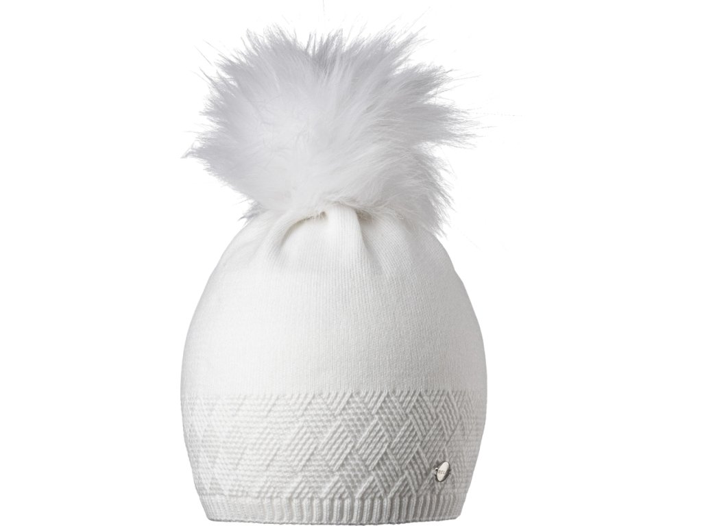 Elegantní dámská zimní čepice s bambulí z umělé kožešiny s jemným plastickým vzorem.