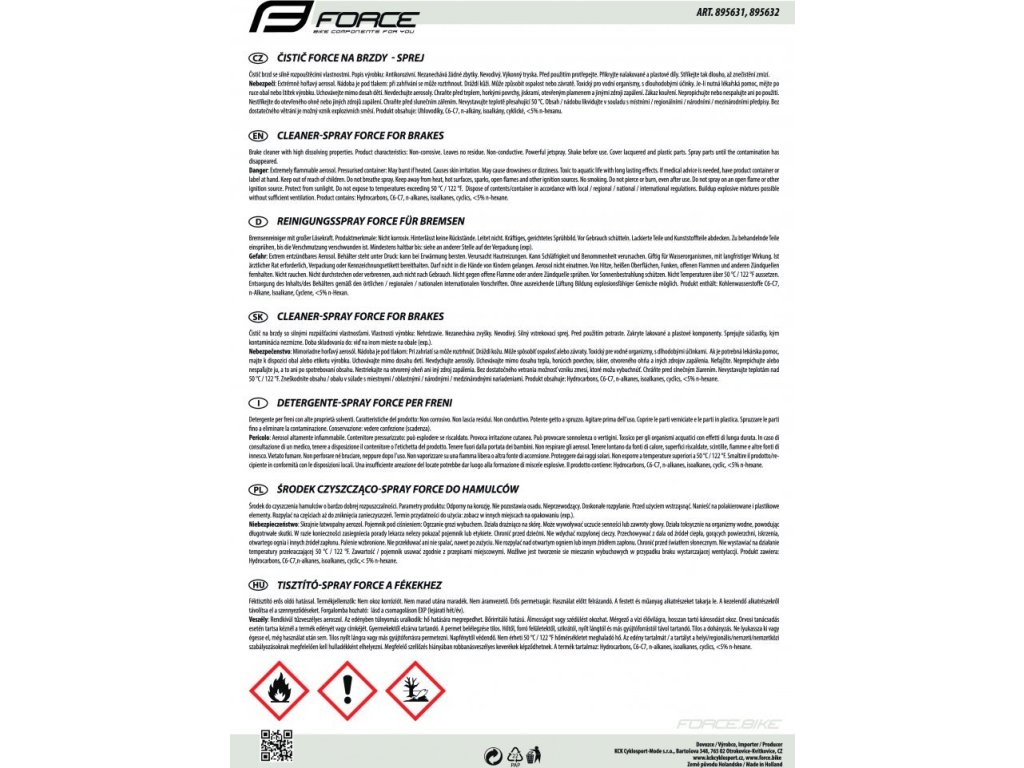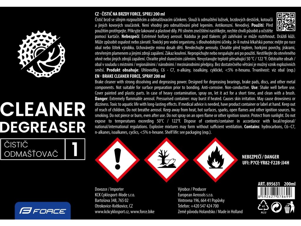 čistič na brzdy FORCE, sprej 200 ml
