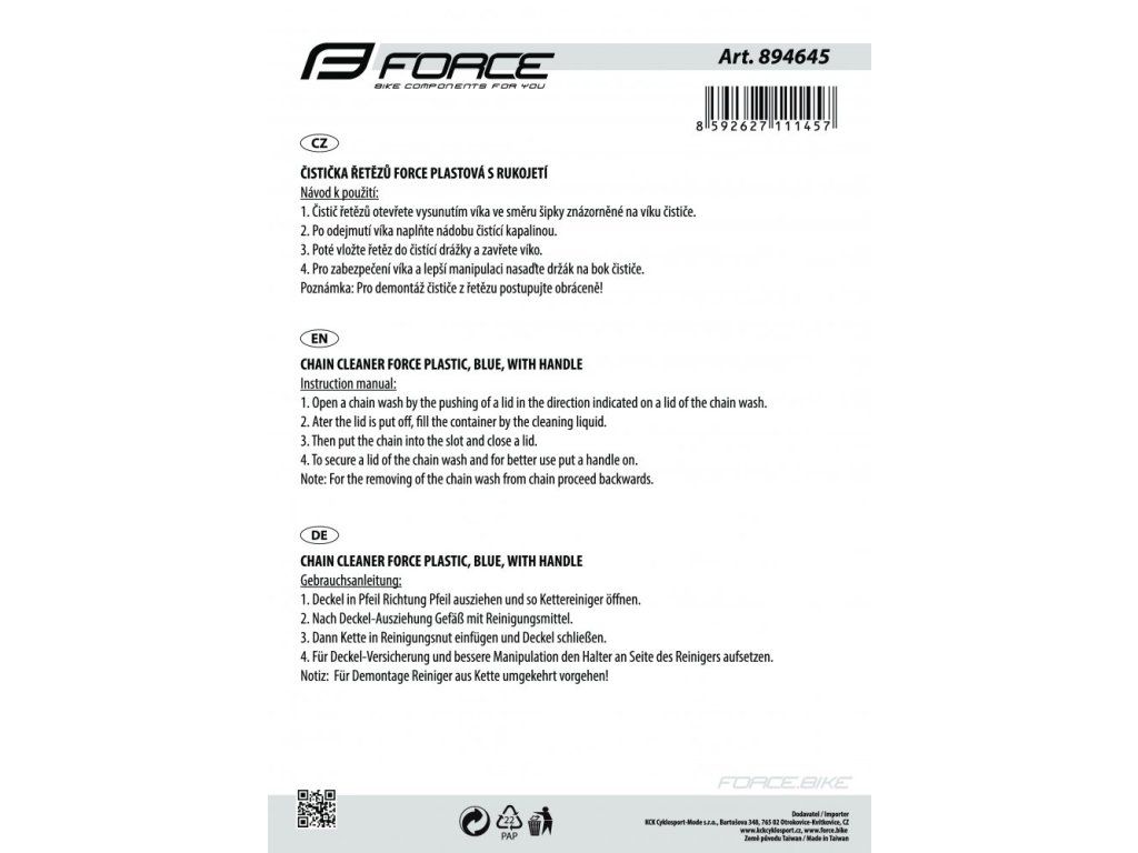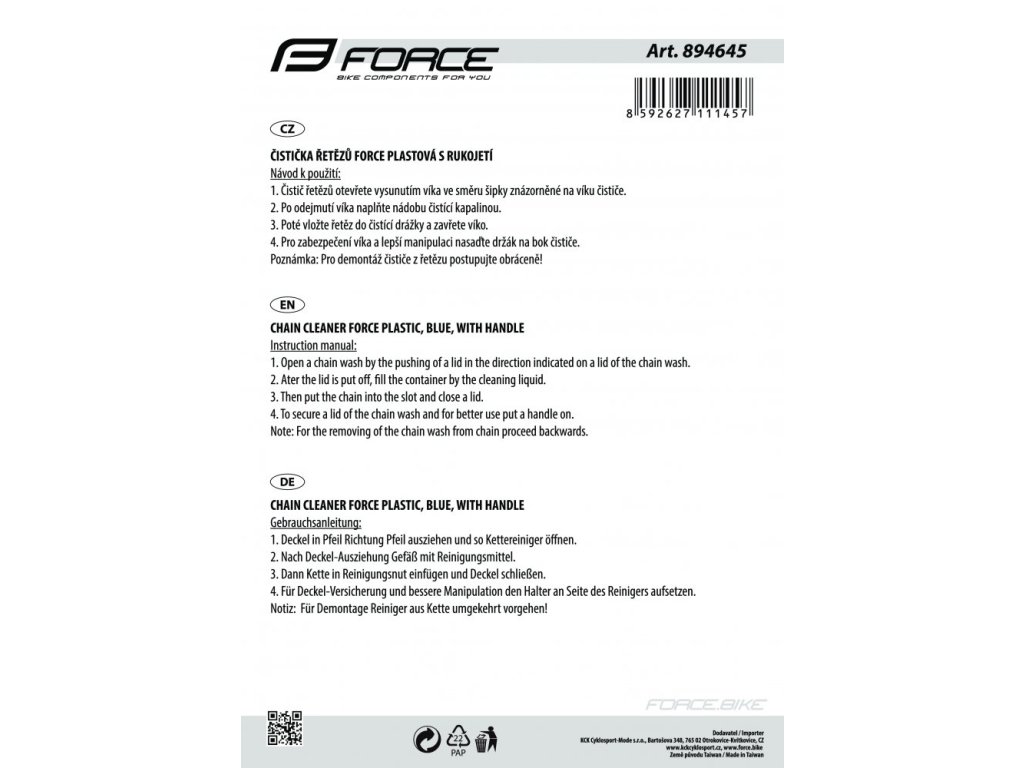 čistička řetězů FORCE ECO plast. s rukojetí, modrá