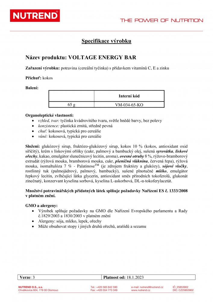 Voltage Energy Bar, tyčinka, 65 g kokos