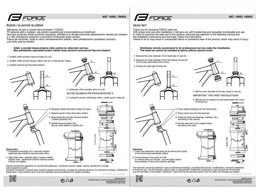 hlavové složení FORCE AHEAD 1 1/8" integrované