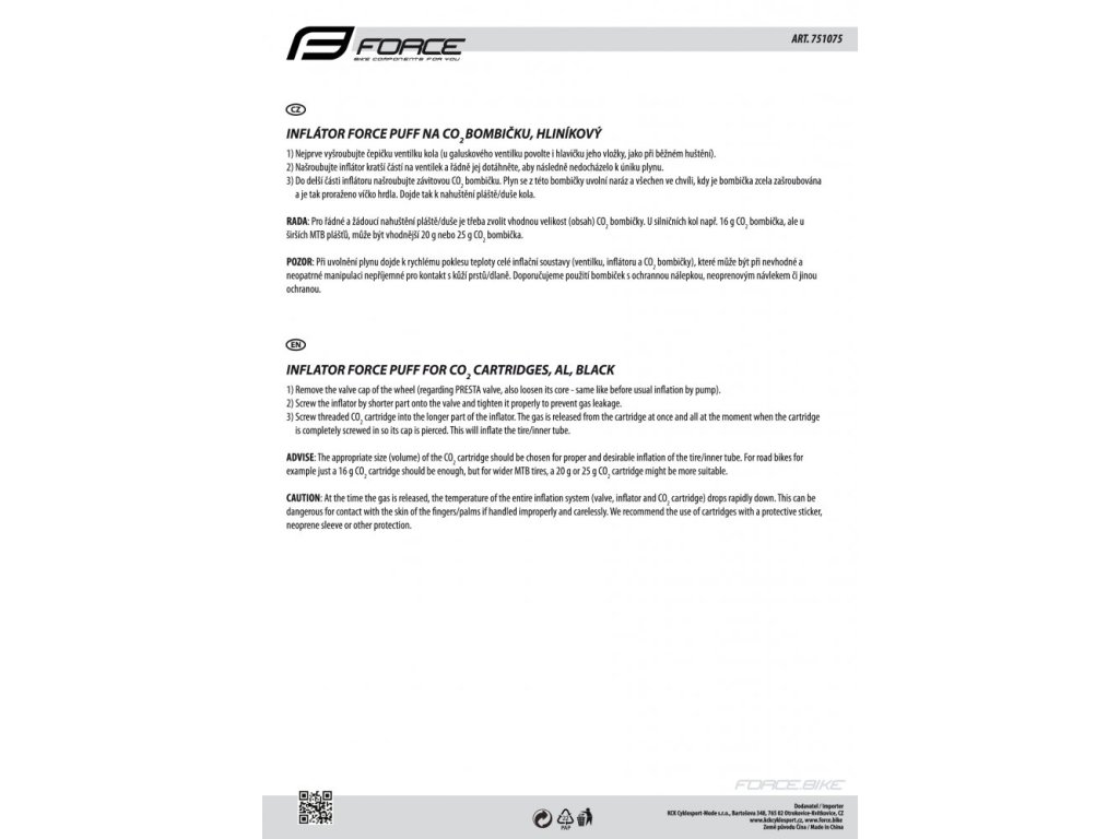 inflátor CO2 FORCE PUFF hliníkový, černý