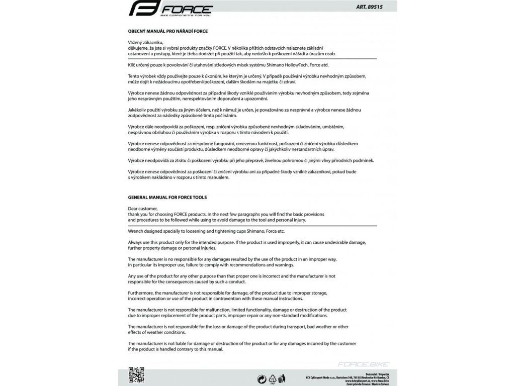 FORCE je česká značka cyklistického vybavení, která spojuje moderní design, funkčnost a výborný poměr cena/výkon. Nabízí kompletní sortiment pro cyklisty všech úrovní – od oblečení a helem, přes komponenty a nářadí, až po doplňky a příslušenství.