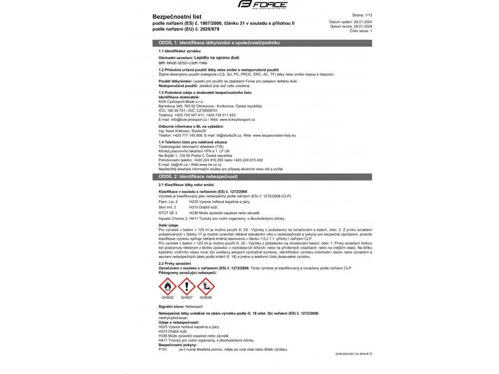 sada FORCE pro opravu bezdušových plášťů s nářadím