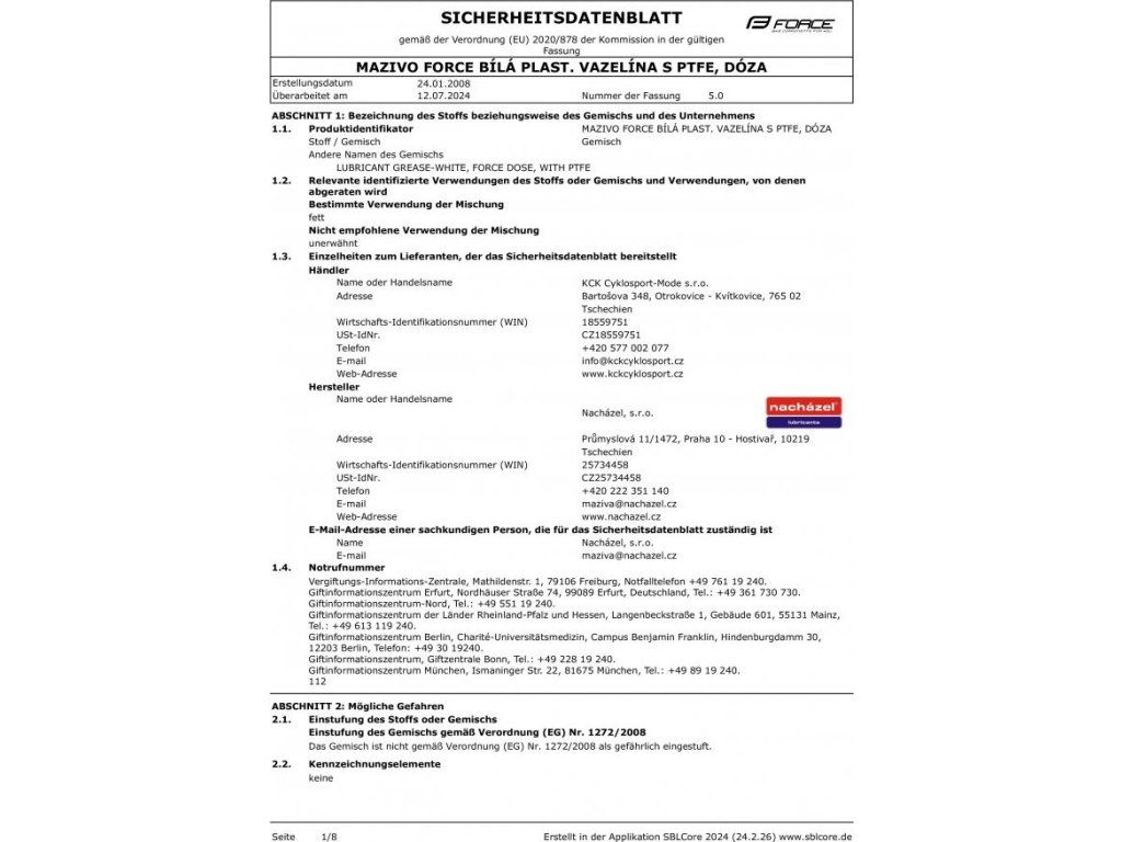 vazelína bílá plastická s PTFE FORCE, dóza 100 g