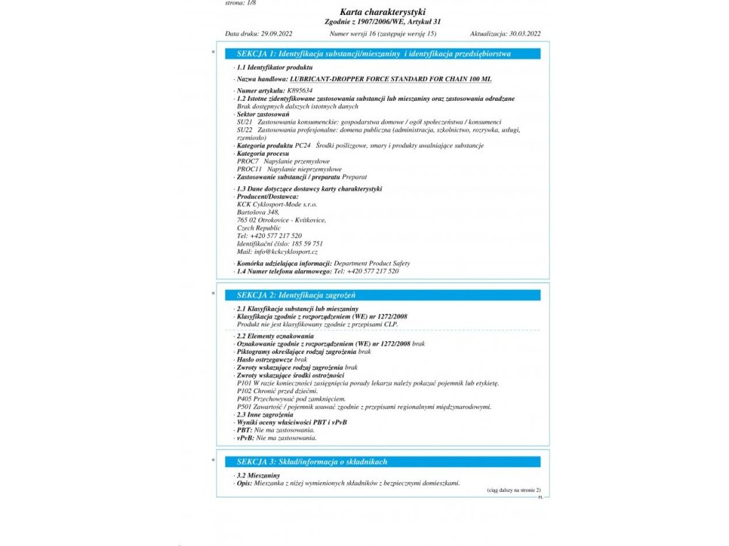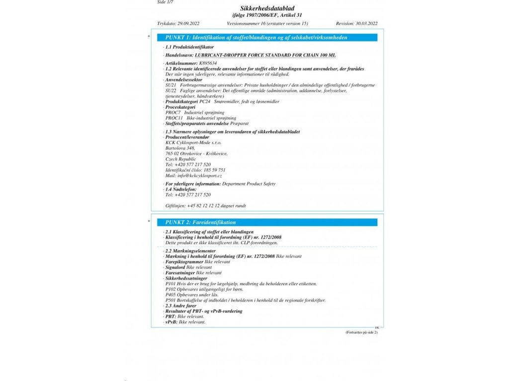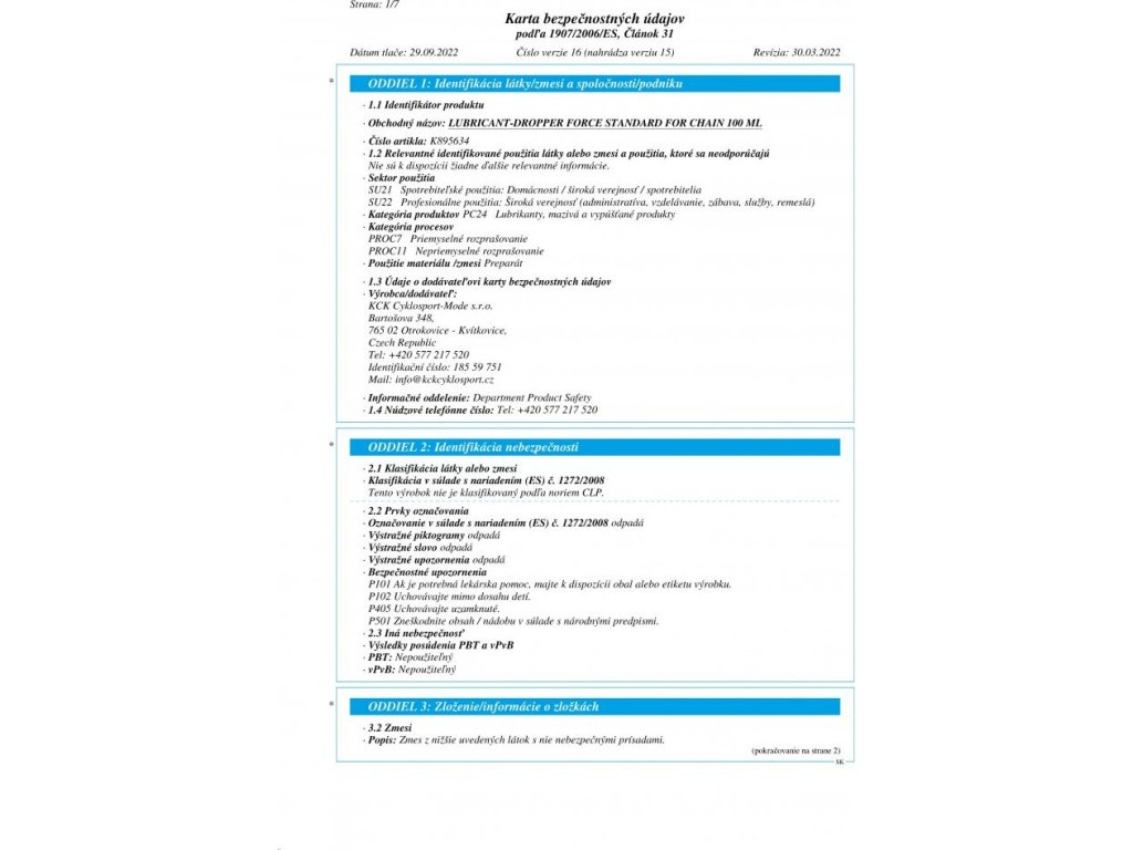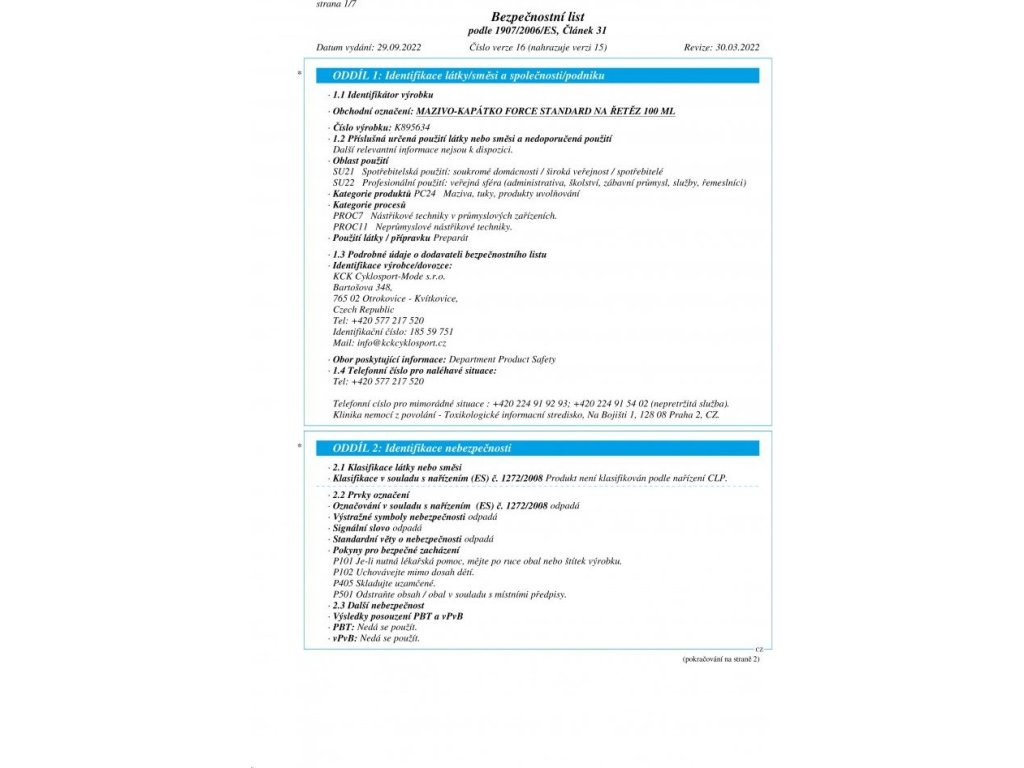 olej na řetěz FORCE STANDARD, kapátko 100 ml