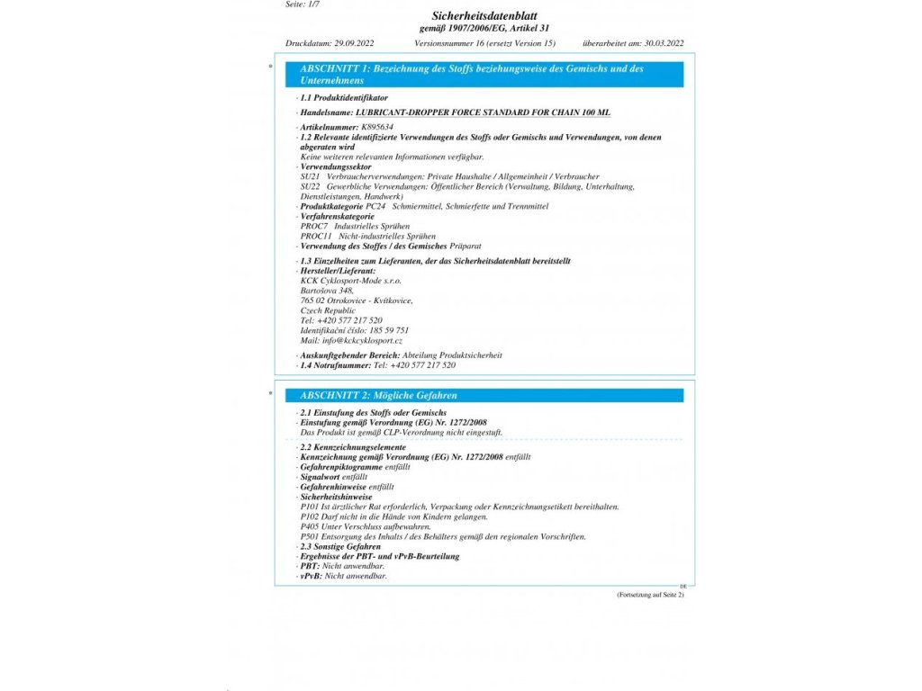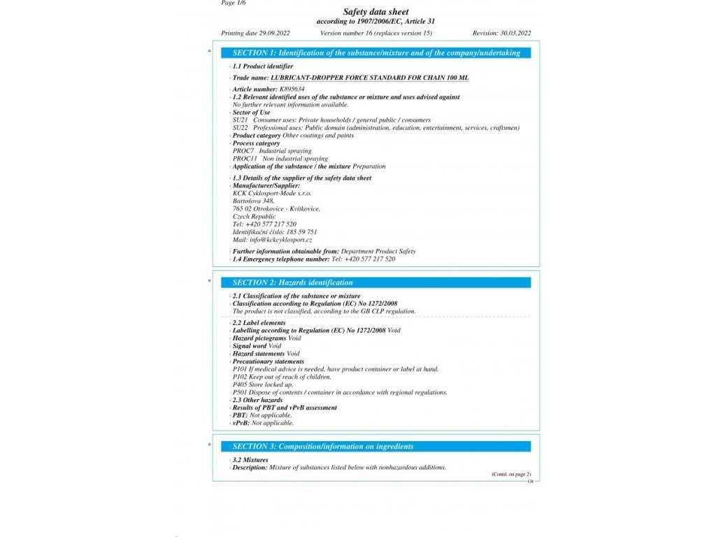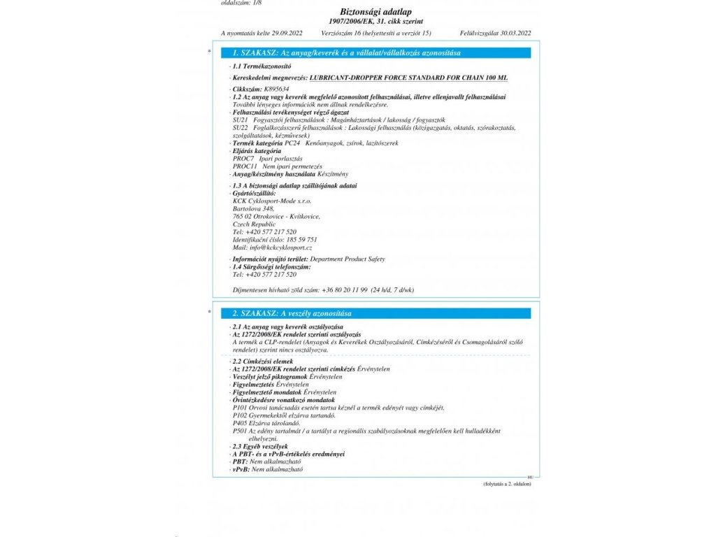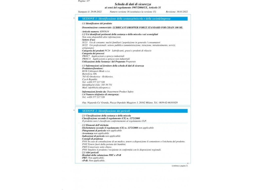 olej na řetěz FORCE STANDARD, kapátko 100 ml