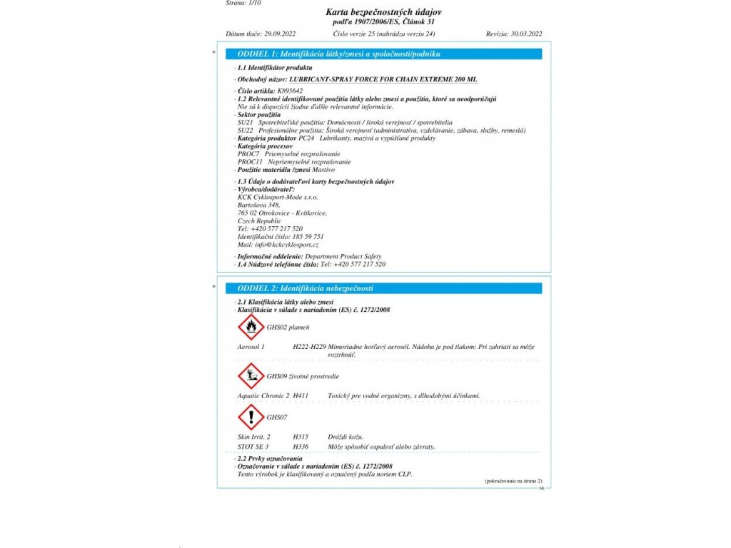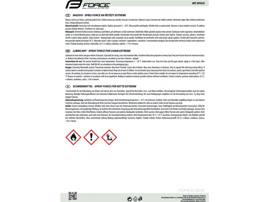 olej na řetěz FORCE EXTREME, sprej 200 ml