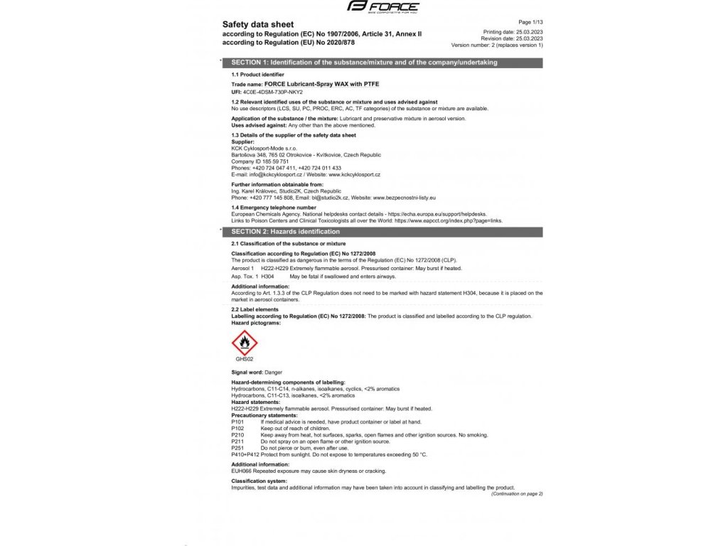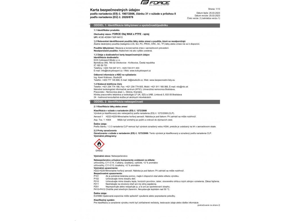 mazivo-sprej FORCE olej WAX s PTFE, 150ml + Výměna dárku do konce ledna 2026