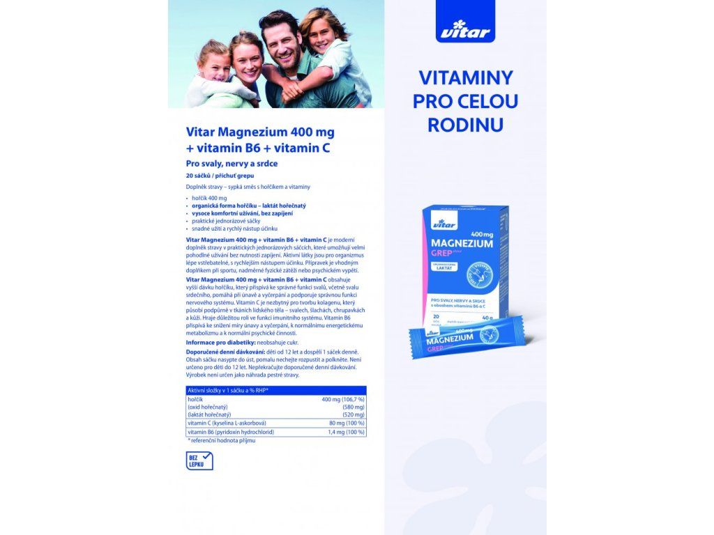 VITAR Magnézium 400 mg+vit B6+vit C, 20 sáčků grep