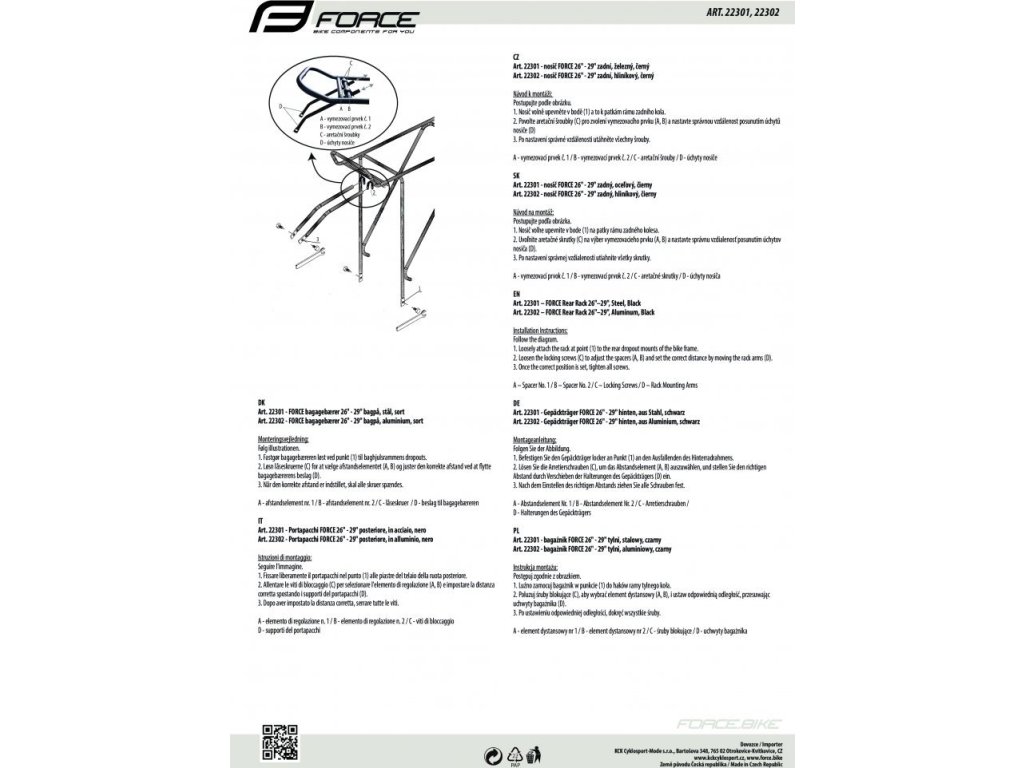 FORCE je česká značka cyklistického vybavení, která spojuje moderní design, funkčnost a výborný poměr cena/výkon. Nabízí kompletní sortiment pro cyklisty všech úrovní – od oblečení a helem, přes komponenty a nářadí, až po doplňky a příslušenství.