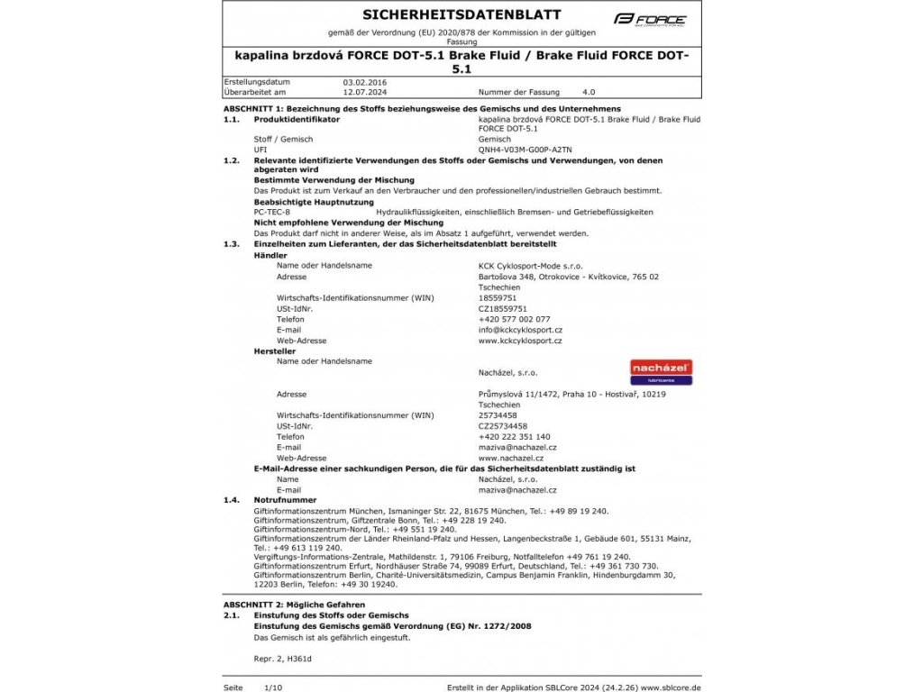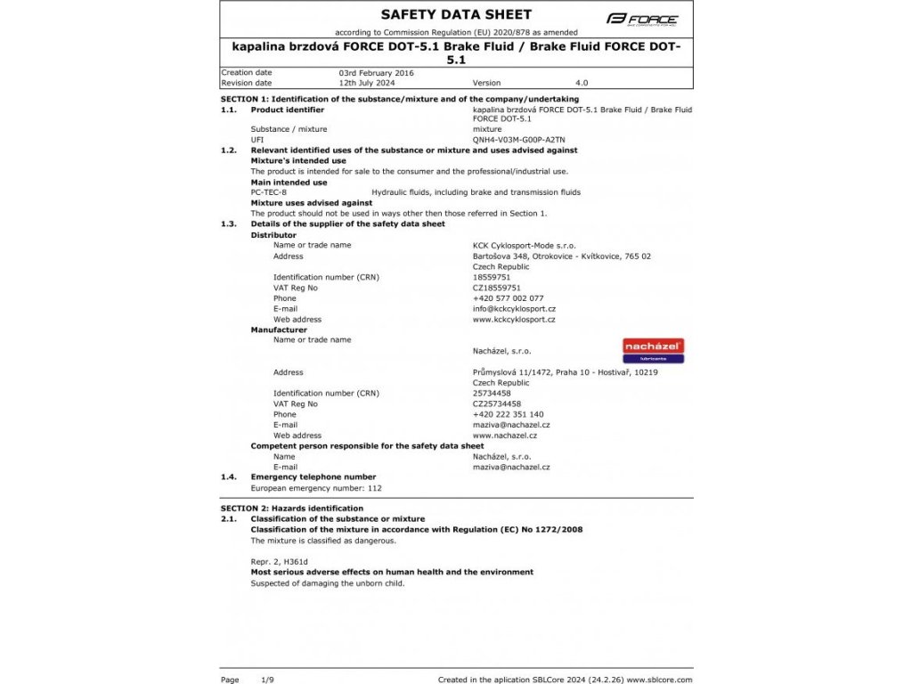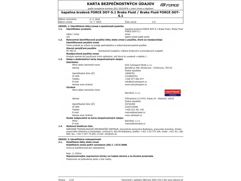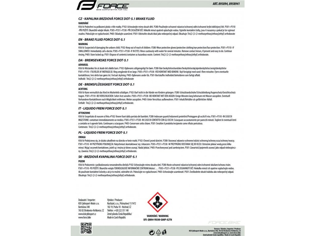 kapalina brzdová DOT 5.1 FORCE, láhev 1 l