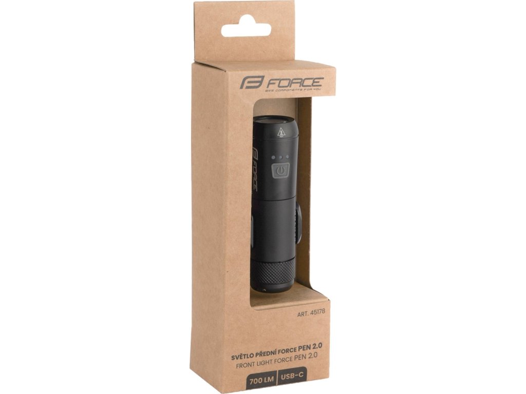 světlo přední FORCE PEN 2.0 700LM USB, černé