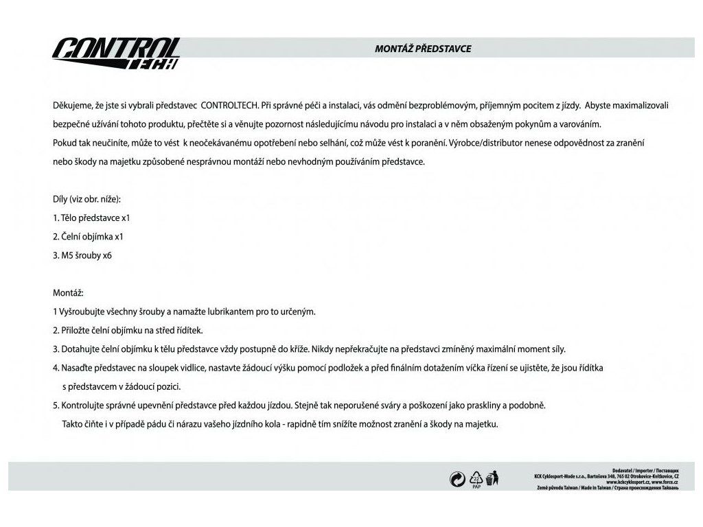 KCK Cyklosport-Mode s.r.o. Bartošova 348, 765 02 Otrokovice-Kvítkovice, Česká republika