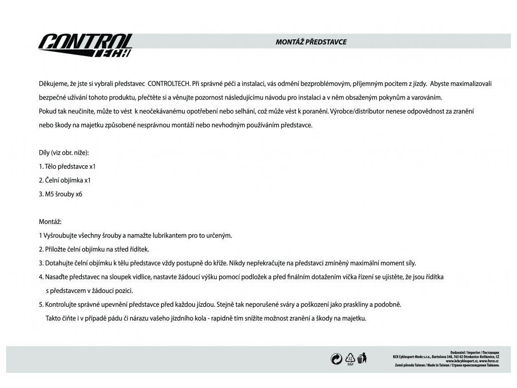 KCK Cyklosport-Mode s.r.o. Bartošova 348, 765 02 Otrokovice-Kvítkovice, Česká republika