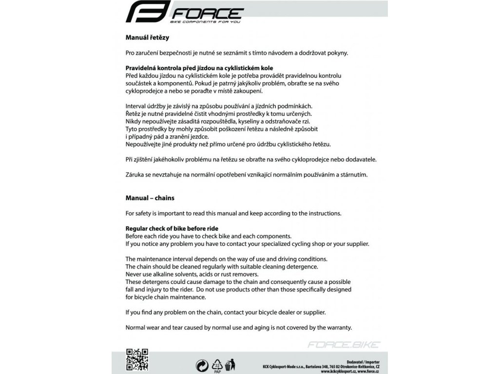 FORCE je česká značka cyklistického vybavení, která spojuje moderní design, funkčnost a výborný poměr cena/výkon. Nabízí kompletní sortiment pro cyklisty všech úrovní – od oblečení a helem, přes komponenty a nářadí, až po doplňky a příslušenství.