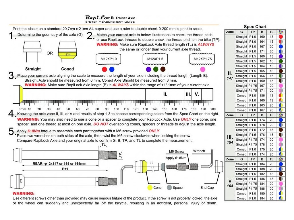 RapiLock poskytuje nejen cyklistickým prodejnám, ale i koncovým uživatelům snadné řešení pro měření, výměnu pevných os a připojení jejich kol k chytrým trenažerům. S průvodcem měření, nabídkou 3 různých délek (147/154/164 mm) a stoupání závitů (P1,0/P1,5/P1,75)¨je možné připojit většinu jízdních kol k chytrým vnitřním trenažerům.