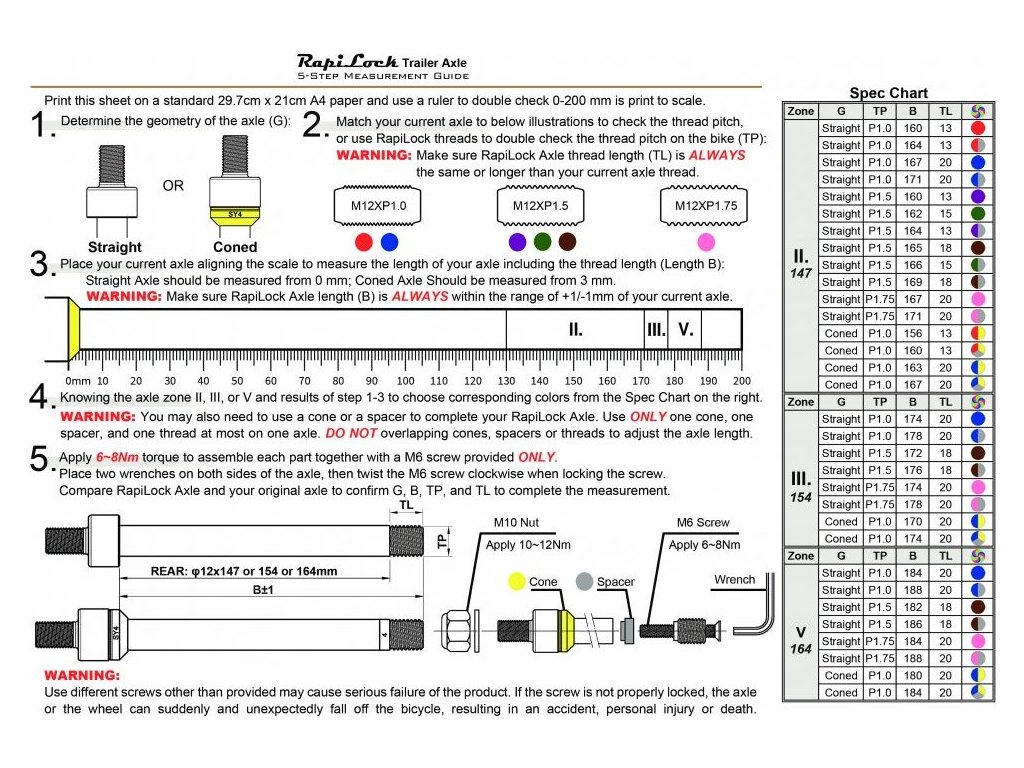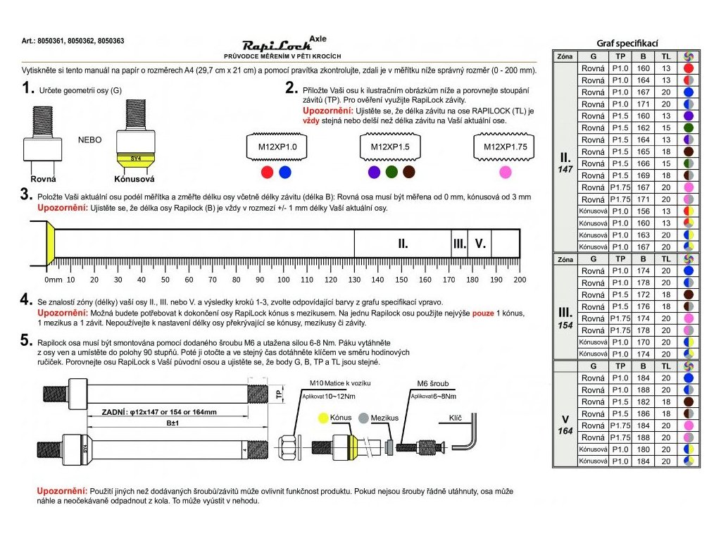RapiLock poskytuje nejen cyklistickým prodejnám, ale i koncovým uživatelům snadné řešení pro měření, výměnu pevných os a připojení kol k vozíkům. S průvodcem měření, nabídkou 3 různých délek (147/154/164 mm) a stoupání závitů (P1,0/P1,5/P1,75) je možné připojit většinu jízdních kol k vozíkům.
