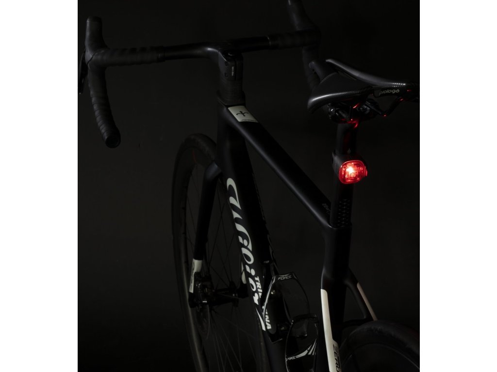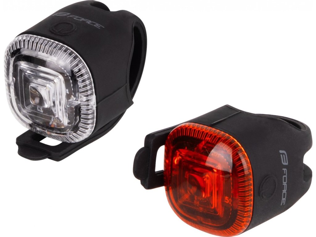1x výkonná přední bílá LED + 1x výkonná zadní červená LED