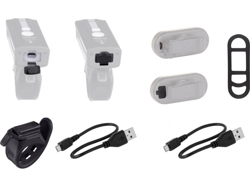Sada obsahuje výkonnou USB dobíjecí přední svítilnu „Alert“ vybavenou 5W