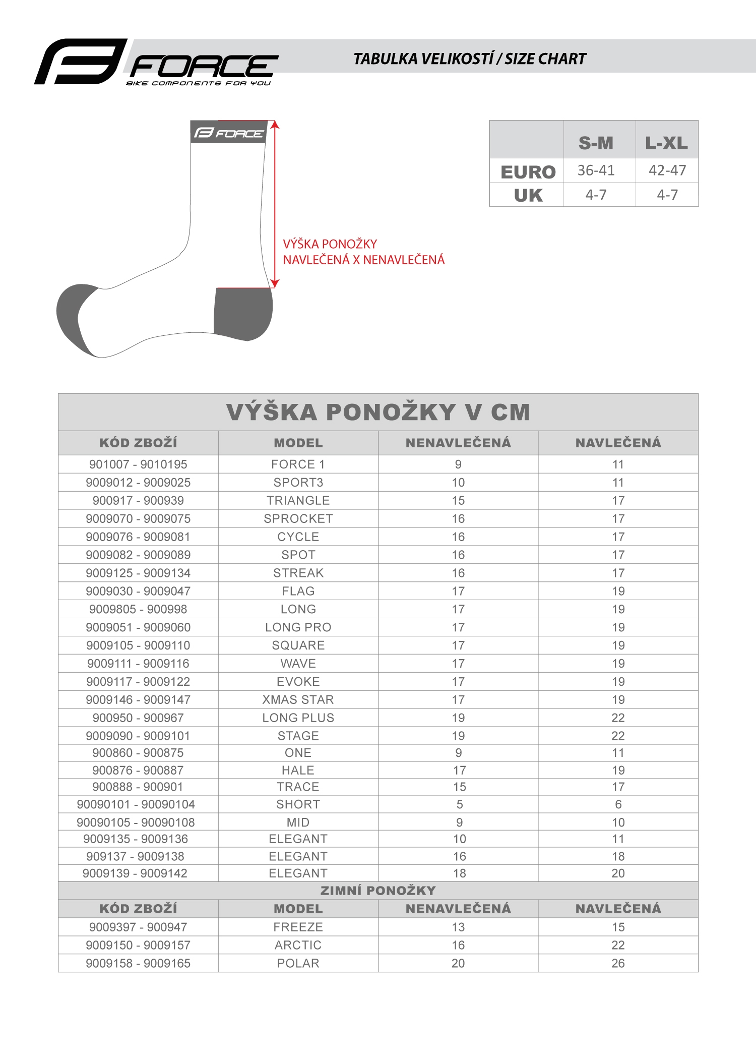 výška neobuté ponožkyu je 17 cm