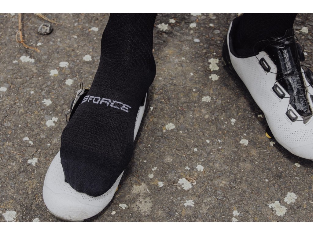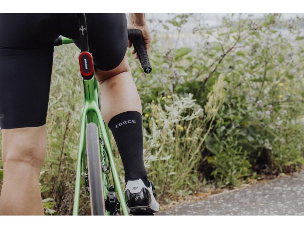 Prémiové vyšší cyklistické ponožky FORCE jsou vyrobené v Itálii z vysoce prodyšného a extra kompresního materiálu pro maximální výkon a pohodlí. Díky preciznímu designu, zesíleným partiím a spolupráci s profesionálními závodníky poskytují skvělou podporu a efektivní přenos síly na pedál. Každý detail těchto ponožek odráží italskou kvalitu a důraz na technickou dokonalost.