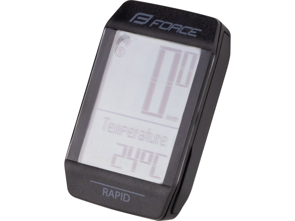 Bezdrátový cyklistický počítač FORCE RAPID s novým typem mikročipu a magnetického senzoru je dokonalým řešením pro cyklisty, kteří hledají vysoce spolehlivý, voděodolný a funkcemi nabitý cyklistický počítač. Tento model, navržený pro maximální všestrannost a přesnost, nabízí 15 základních funkcí pro hloubkovou analýzu výkonnosti, včetně možností pro dvě kola a sledování teploty.