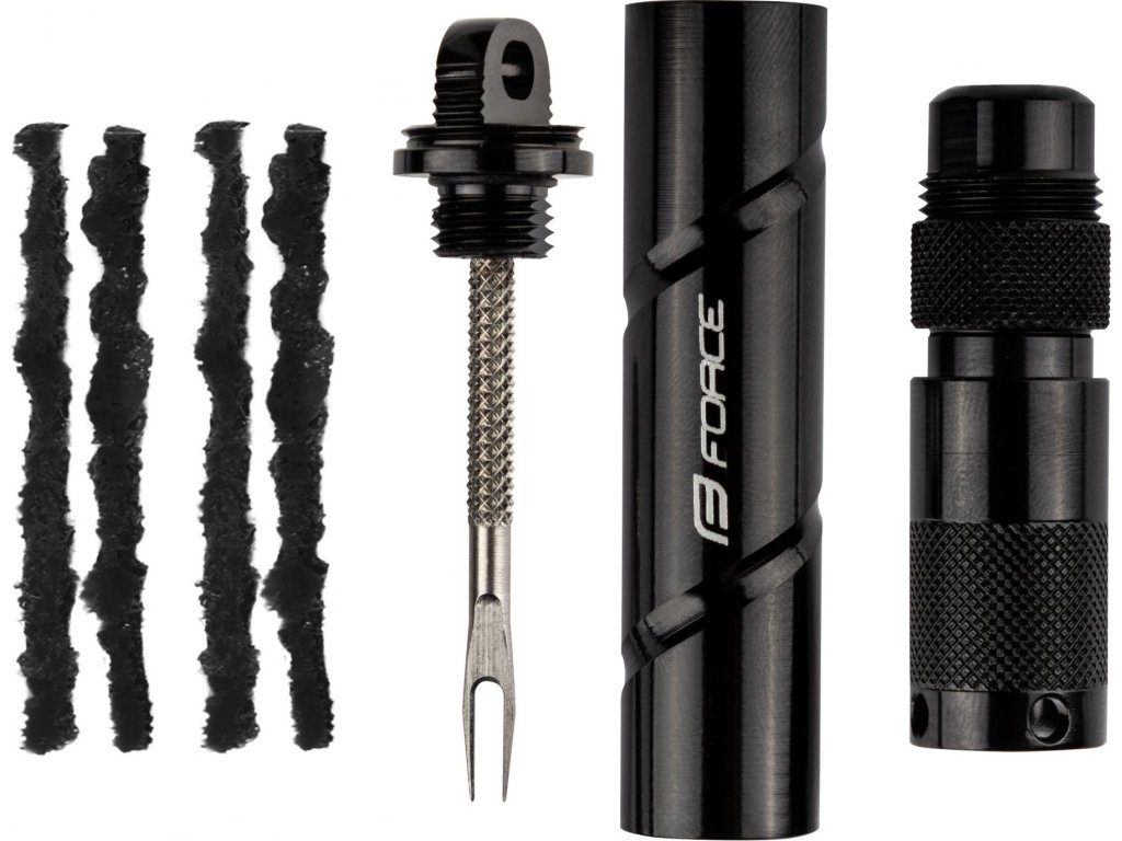 sada FORCE PIKADO 2.0 pro opravu defektu u bezdušových (tubeless) plášťů obsahuje: