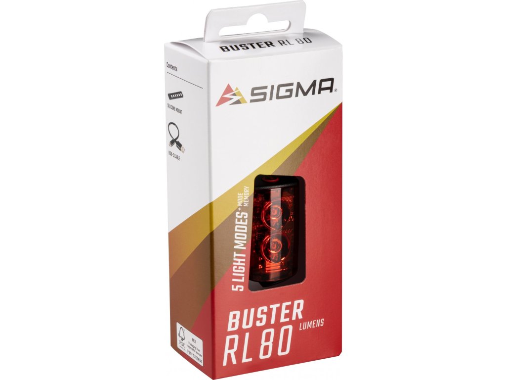 SIGMA BUSTER RL80 je malé, lehké, ale výkonné zadní světlo. Ideální pro každodenní městskou cyklistiku.