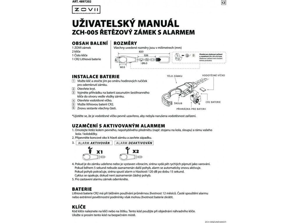 Typ zámku: řetězový s alarmem