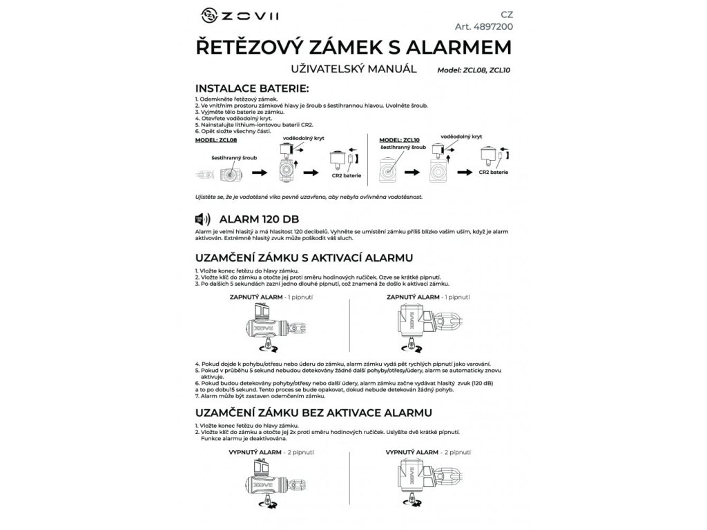 zámek ZOVII, řetězový s alarmem 8/1200 mm