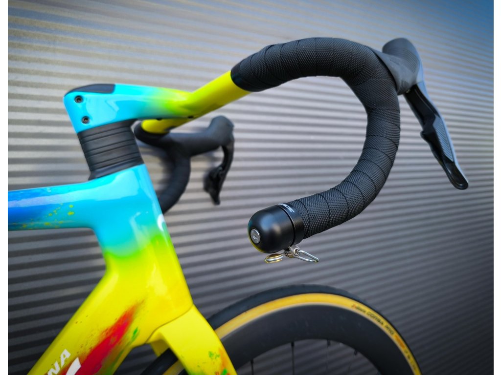 Kompaktní zvonek do silničních řídítek nahrazuje standardní zátku a šetří místo.