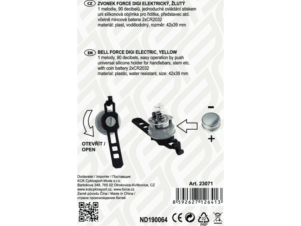 zvonek FORCE DIGI elektrický, žlutý